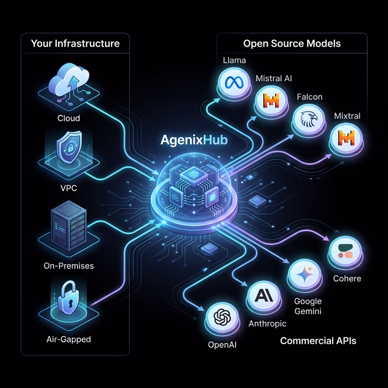 Deploy secure, customizable AI solutions on your infrastructure. Cloud, VPC, on-premises, or hybrid—your data stays under your control. Get enterprise-grade AI without compromising security or compliance.