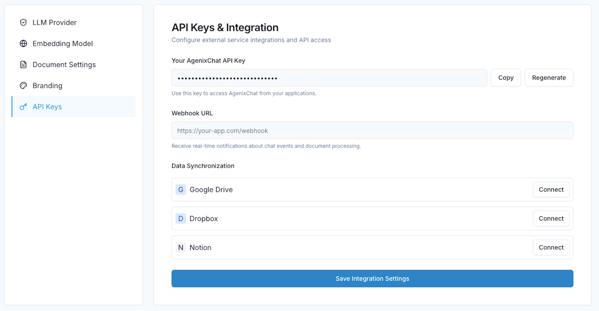 Connect AgenixChat to your existing enterprise systems and data infrastructure